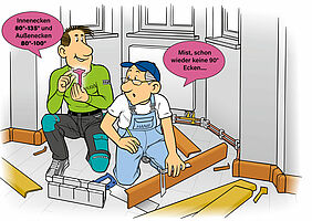 Die Formteile verfügen über eine weiche Dichtlippe zur Wand, die individuell auf die jeweils vorhandene Ecksituation angepasst werden kann.